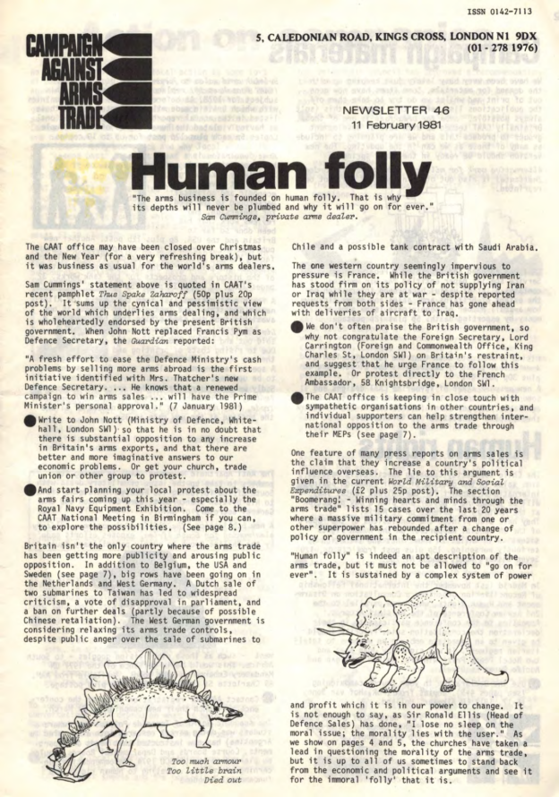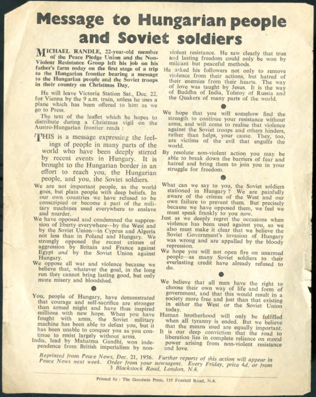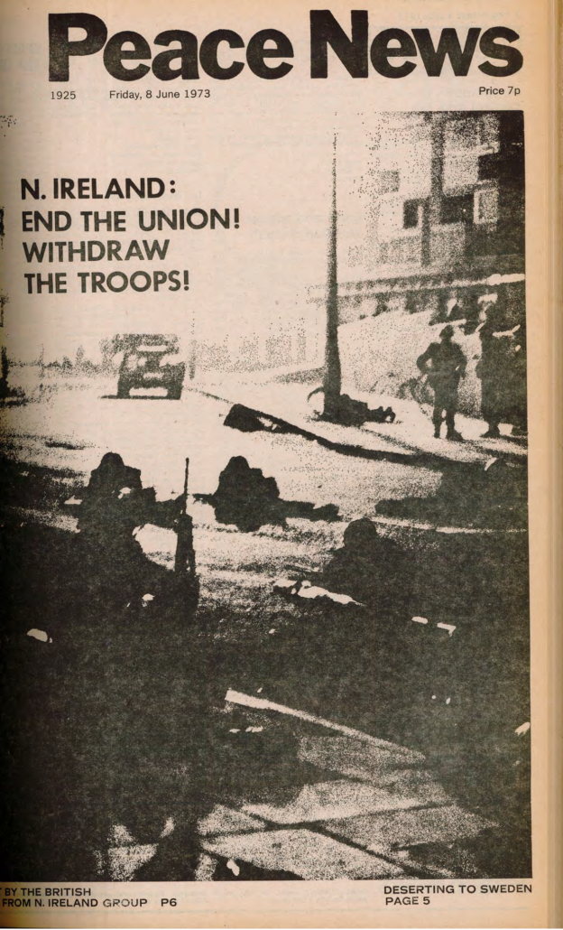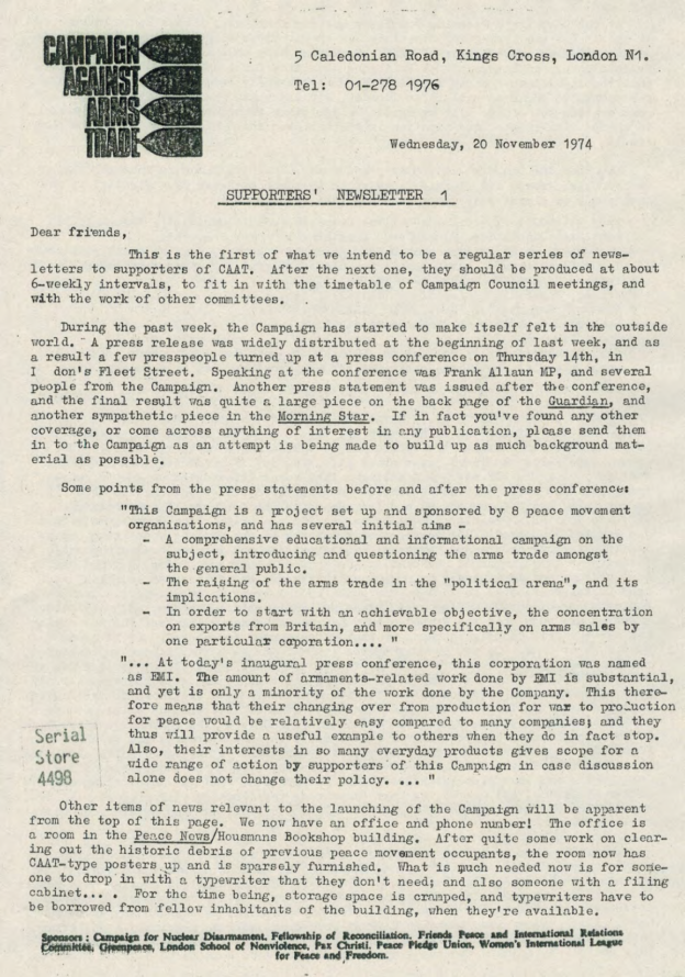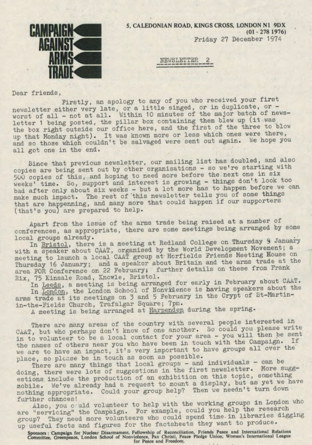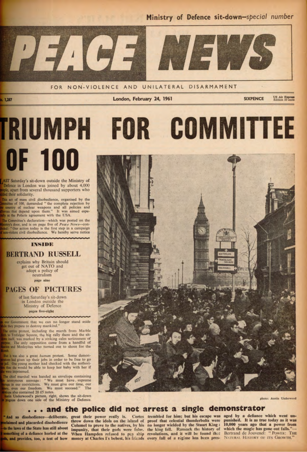 And then I think it was Pat said, ‘Well, why don’t we go to Housmans, you know, to Peace News?’ Oh. Off we went to Housmans, who of course were delighted to see us all. And we went up the back stairs, the, the entrance that’s, not the front door of the shop but another entrance. And we walked all the way up to the top, the very top floor. I think it’s a, a three-storey building isn’t it? But anyhow, the very top. And there was a big room there that was sort of, fairly empty. And we thought, right, what are going to do now? But she still hadn’t been arrested. So we thought, I know what we’ll do. We’ll ring the Daily Telegraph. So we rang the Daily Telegraph, and said there’s a fugitive at Housmans Bookshop, 5 Caledonian Road. And so, eventually, up turns the Daily Telegraph, and had a talk to us, and, took photographs, and there was a, there was a photograph of us all on Sunday’s, on the front page of Sunday’s Telegraph that week. And, in no time the police turned up. I think the Telegraph must have rung, rung them. And, so they… So there was various officers, about, five or six officers turned up. And… So we started sort of, chanting and making speeches. And they tried, obviously they tried to get Pat, who sat on the floor, or lay on the floor, and what we did was, to hold on to her, hold on to a leg, hold on to an arm. Just held on to her, several of us. And so, so the police were sort of, dragging us off her. And the moment that they dragged one of us off, another person stepped up and got hold of her. And so we had this tussle for quite a, quite a long time. I mean we knew we weren’t going to win; we were making a point, we were making a demonstration. And, so, eventually, they managed to get her. Of course, she wouldn’t, she refused to walk down, so they had to, had to carry her down all flights, three flights of stairs, which was quite [laughs] amusing. And, so, we went out into the street, and I said, and other people said, you know, ‘Right, now, disperse instantly.’ So we did. Because obviously that’s the point when the police then start coming to make trouble and trying to arrest, arrest the demonstrators.